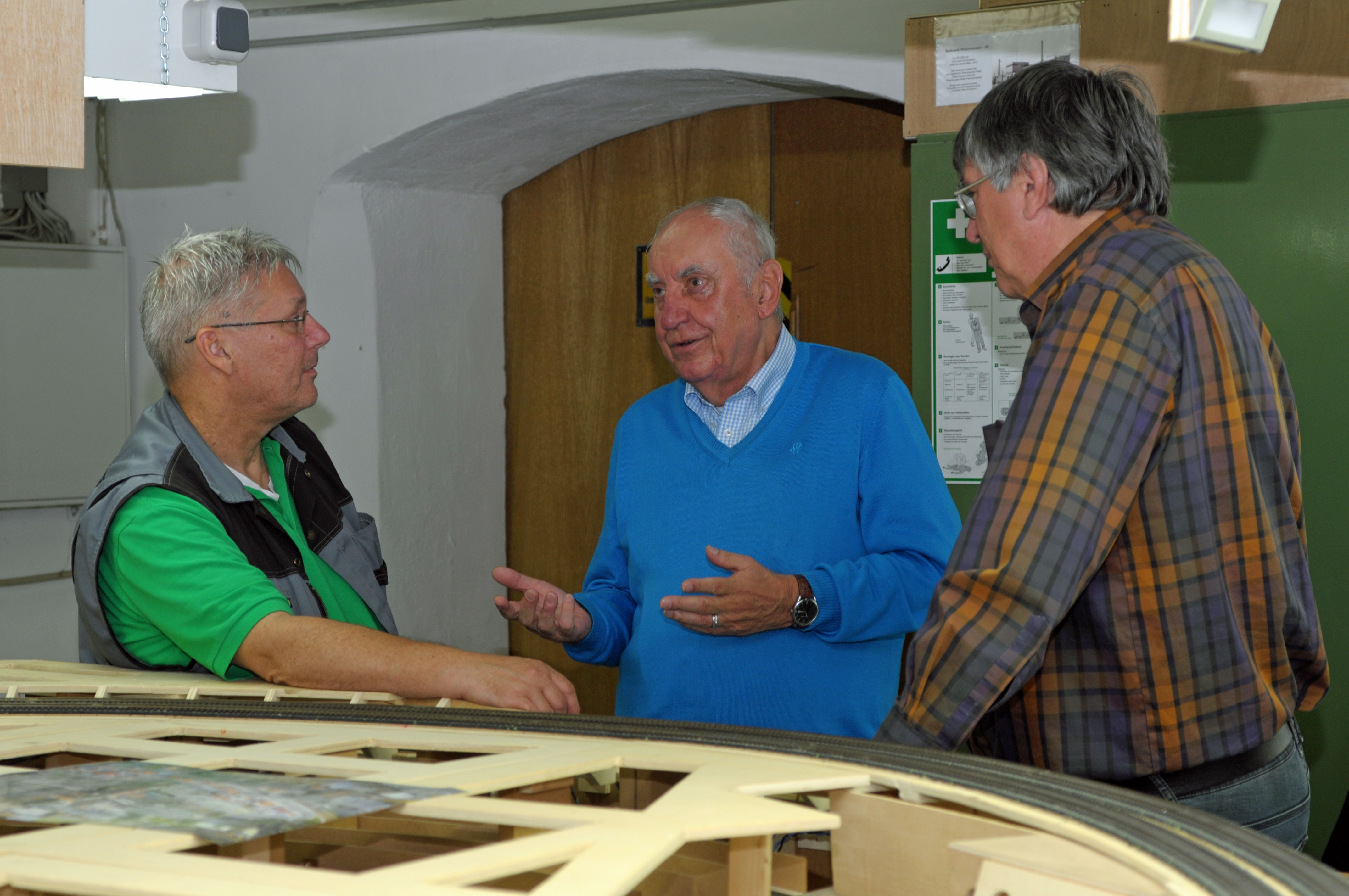 eine Testanlage für die im Verein gebräuchlichen Baugrößen HO, TT und N. Es sind vereinfacht drei ineinander liegende ebene