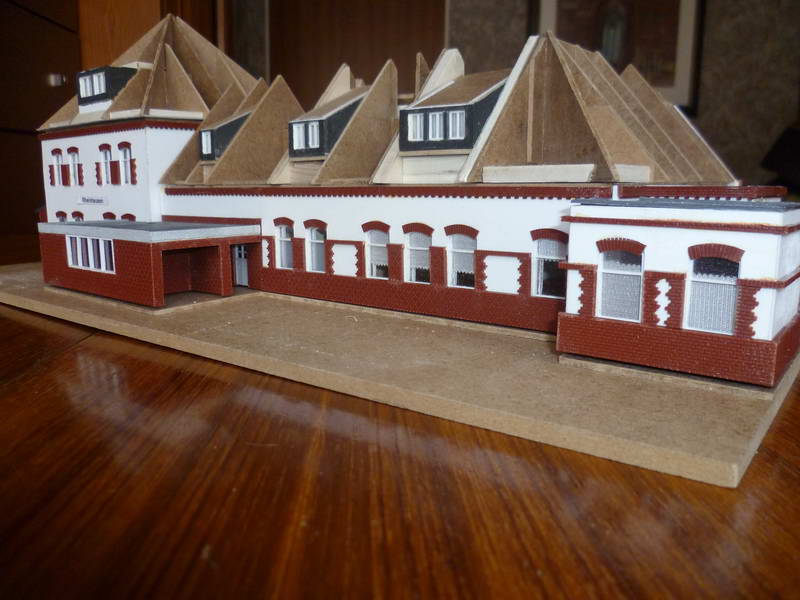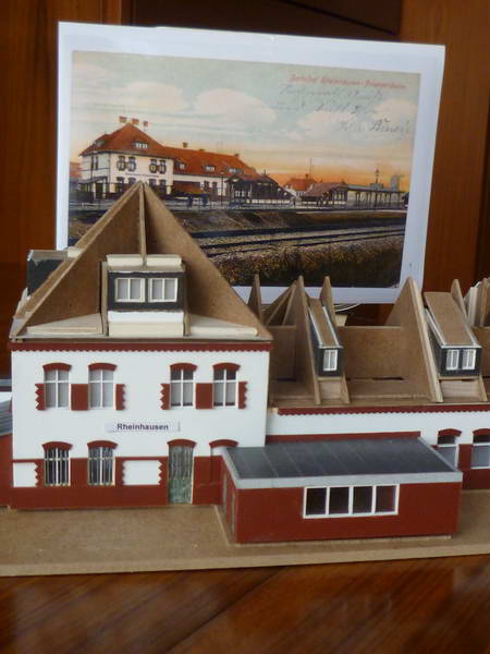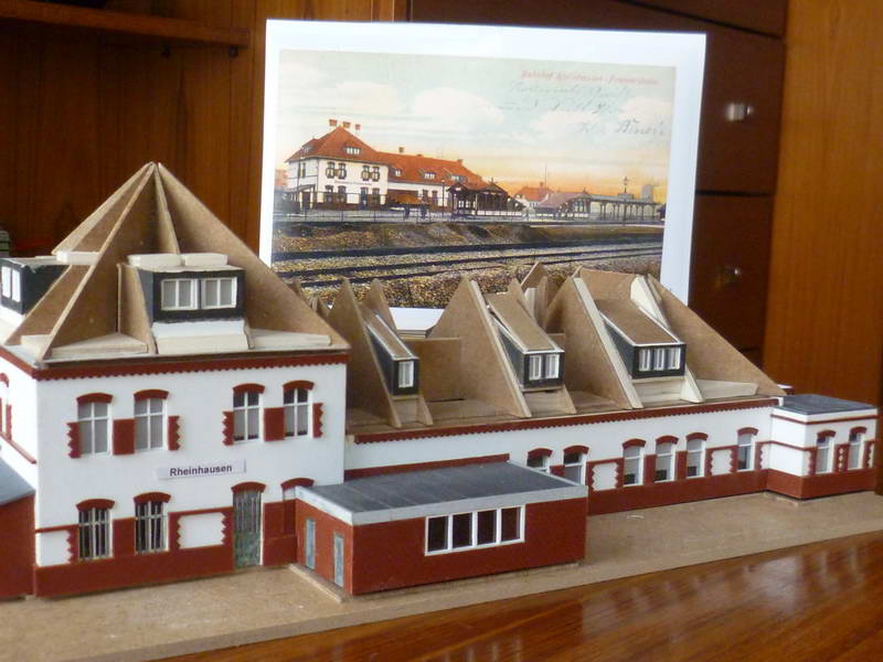 Der Besucher oder Ortskundige wird in dem Gebäude ohne Probleme den Rheinhauser Bahnhof erkennen. Grund für die Doppelmodellierung ist letztlich der Schutz des zeit- und sachaufwendigeren Detailmodells während der weiteren Bauaktivitäten an der Club-Anlage. Wo gehobelt wird, fallen bekanntlich Späne. Das filigranere Modell wird bei Anlässen des Clubs mit Publikum präsentiert.