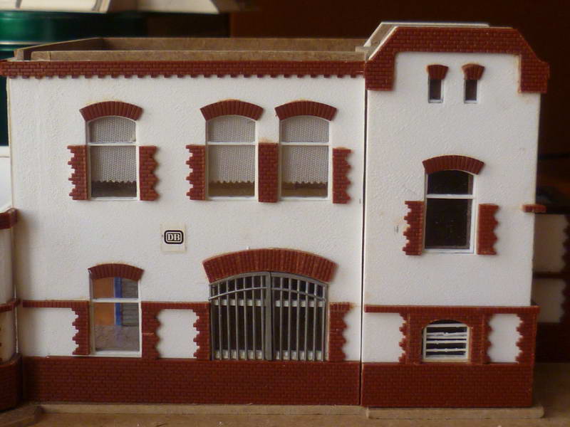 Das Empfangsgebäude an der Windmühlenstraße wird bzw. ist zweimal gestaltet. Beide Modelle stellen das Gebäude um 1973 dar, da der Bahnhof zu dieser Zeit noch mit allen Räumen und Einrichtungen genutzt war.