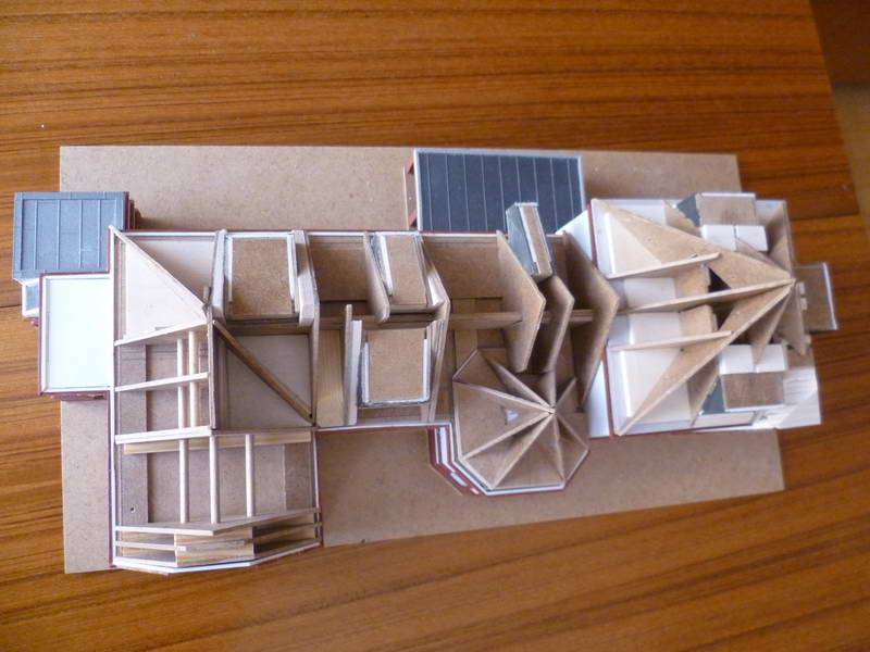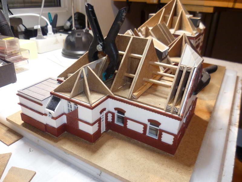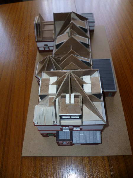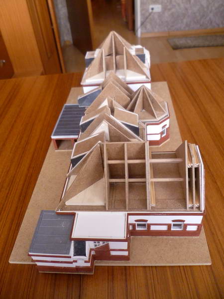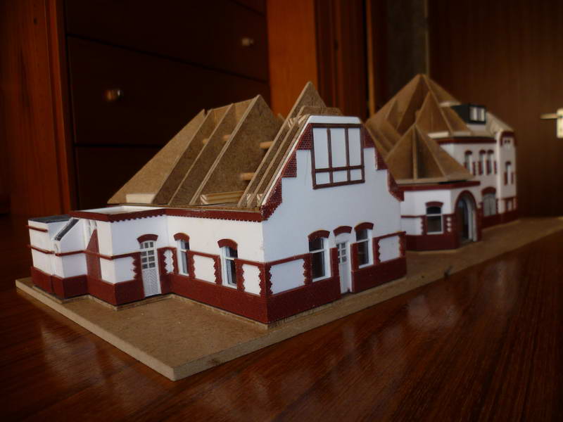 Dachplatten, Ziegelfriesen, Fenster, alles nach Bedarf modifiziert.