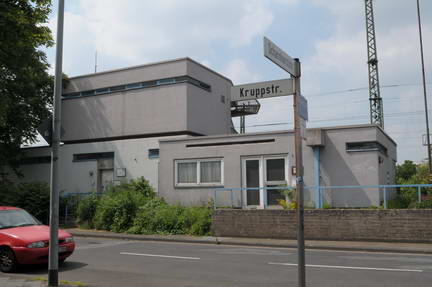 Am 1.10.1907 wurde der Haltepunkt Rheinhausen-Ost am Tor 1 zur "Friedrich-Alfred-Hütte" für den Personenzugverkehr eröffnet. Diese Haltestation war auf Antrag der Firma Krupp eingerichtet worden und besaß je einen Richtungsbahnsteig für die Züge nach Krefeld mit Zugang von der Friedrich-Alfred-Straße und mit Zugang von der Kruppstraße für die Züge nach Duisburg. Als Provisorium ist der Haltepunkt damals gebaut worden; er ist es bis heute geblieben.