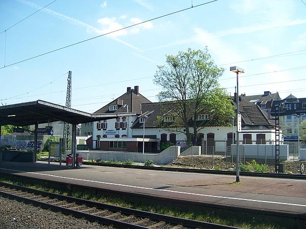 Rheinhausen (Friemersheim)-West neu gebaut. Es stand in Höhe des Brückenbauwerks zur Überführung der Bahngleise. Das Stellwerksgebäude "Rmf", Rheinhausen-Mitte-Fahrdienstleiter, in Ziegelbauweise errichtet, war östlich des Bahnhofs zwischen den Gleisanlagen positioniert, wurde 1890 in Dienst genommen und 1973 durch einen Neubau an der Kruppstraße abgelöst.