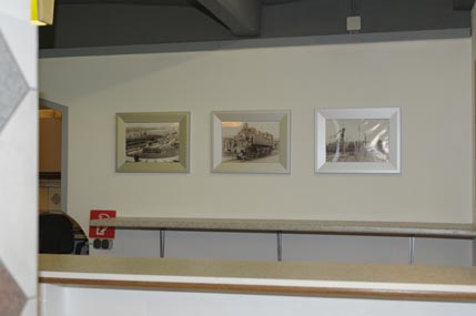 mit eingearbeiteten schwarz-weiß Fotos der Originalbebauung.