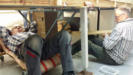 Nach dem Fahrtag im September wurde nach intensiver Planung das Untergestell für die Bahnhofssegmente Rheinhausen von "störendem Tragwerk" bei Arbeiten unter der Anlage bereinigt und neu mit versetzten Querstreben und Bodenstützen ausgestattet. Damit sind jetzt ohne Mühe und "Verrenkungen" Arbeiten unterhalb der Segmente möglich. Für die ehemaligen Messemodule der rückführenden Strecke zum Schattenbahnhof schlossen sich die gleichen Arbeiten an.