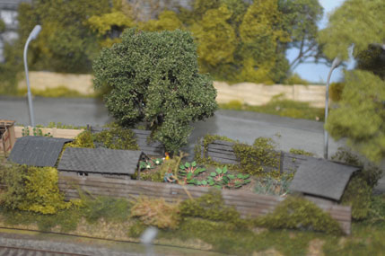 Dazu zählte die Standortfestlegung der Gebäudemodelle anhand der Fotos aus dem Stadtarchiv, die Gestaltung von Schrebergärten entlang der Behringstraße,