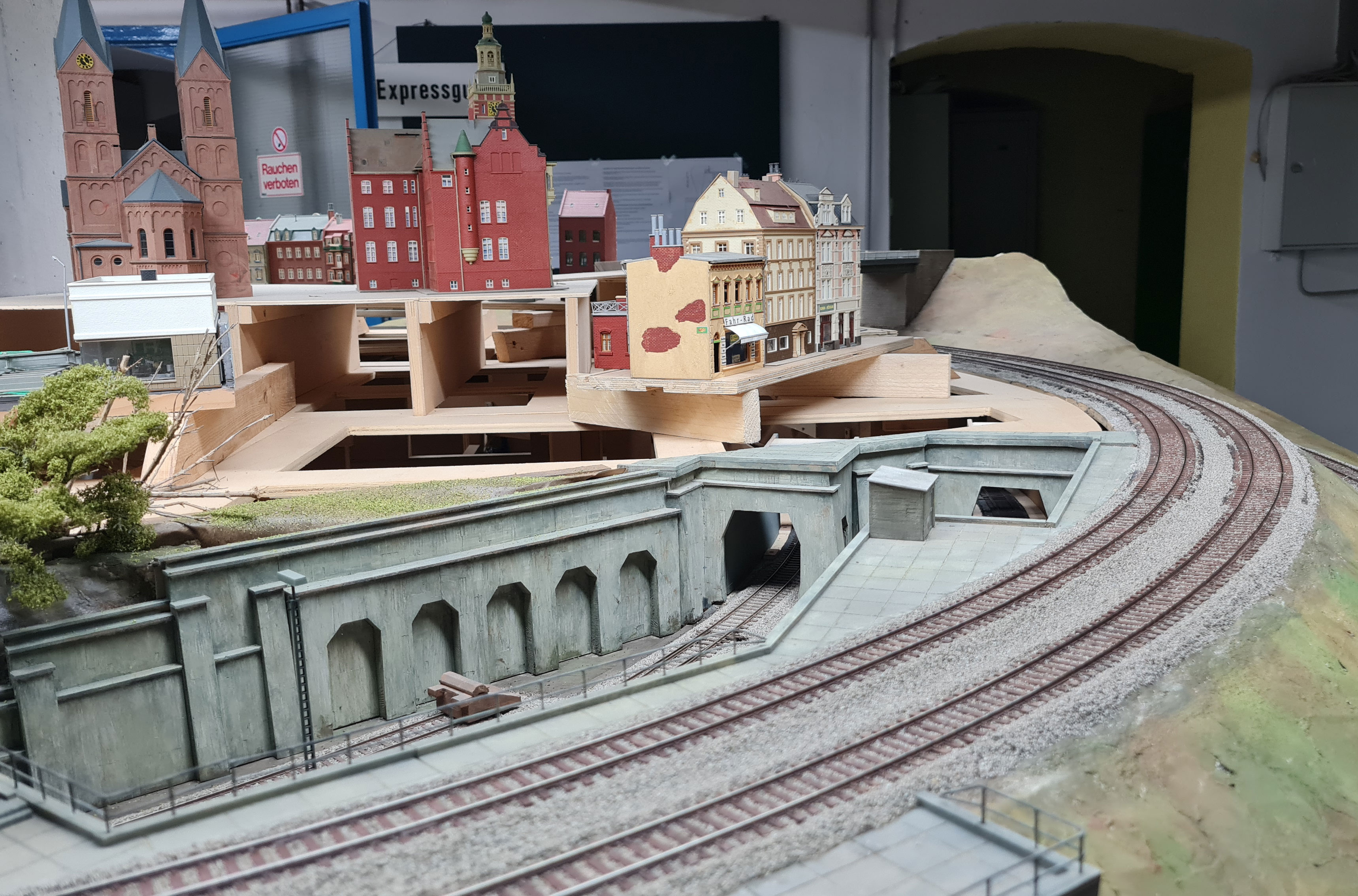 einige Bauwerke in HO ersetzte die Arbeit im Verein. In der Gestaltung zählten die Treppenauf- und -abgänge am Bahnhof Ost dazu,