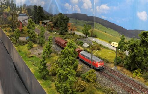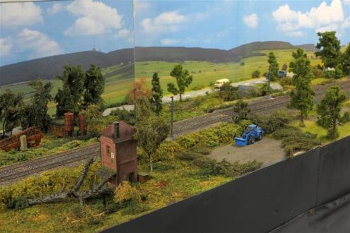 Wir haben eine Modulanlage gebaut, die auch für Ausstellungen und Präsentationen des Vereins genutzt werden kann. Sie besteht aus sechs Strecken-Modulen, die von unseren Mitgliedern gestaltet wurden und die in die Segmentanlage auf der rückführenden Strecke zum Schattenbahnhof integriert sind. Die Module bleiben im Privatbesitz. Für die Strecken-Module gibt es bei separater Vorführung für die beiden Kopfenden Wendemodule.